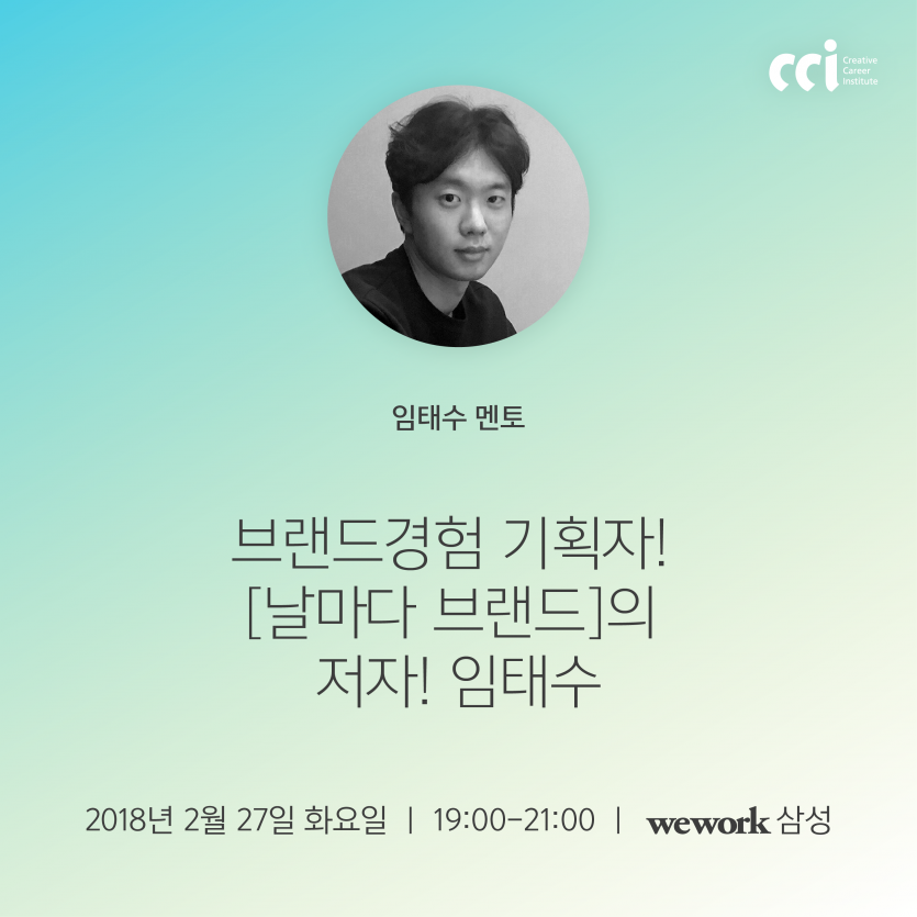 크리에이티브 인재의 경력개발을 위한 활동을 이어나가는 CCI(Creative Career Institute)가 디자이너 멘토링 시즌2 를 위워크 삼성점에서 진행합니다.