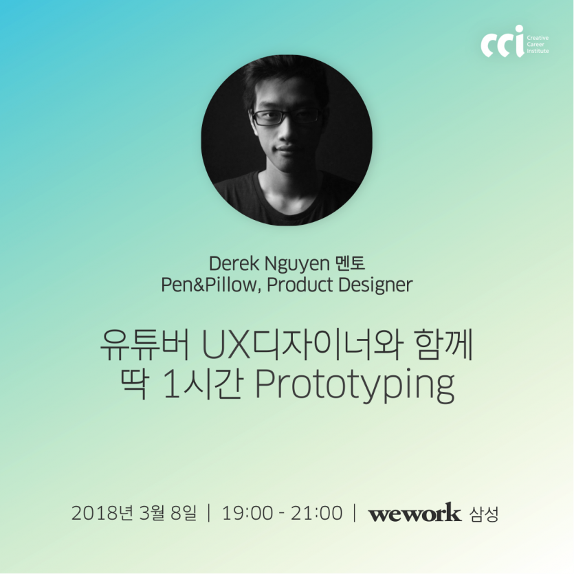 크리에이티브 인재의 경력개발을 위한 활동을 이어나가는 CCI(Creative Career Institute)가 디자이너 멘토링 시즌2 를 위워크 삼성점에서 진행합니다.