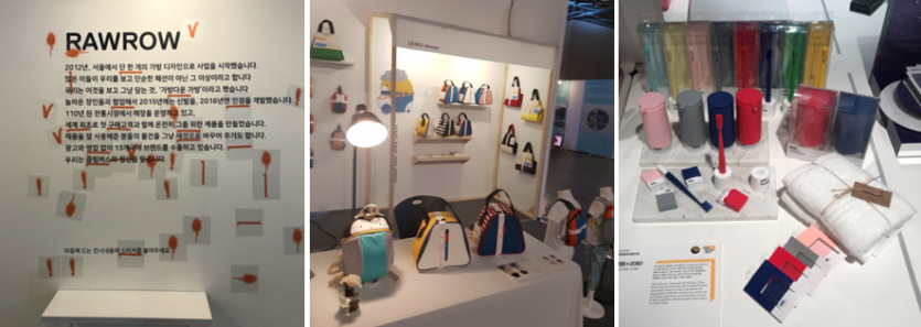강의, 세미나뿐 아니라 DESIGNED BY KOREA 의 제품들을 전시, 판매하는 부스들이 꽤 눈에 띄었는데 다른 곳에서 흔히 볼 수 없었던 참신한 제품을 전시하고 판매하고 있었습니다. 최근 기업 아카데미 프로그램을 함께 했던 이의현 대표의 RAWROW 의 부스도 제품소개를 이색적으로 전시하여 반가웠습니다.
